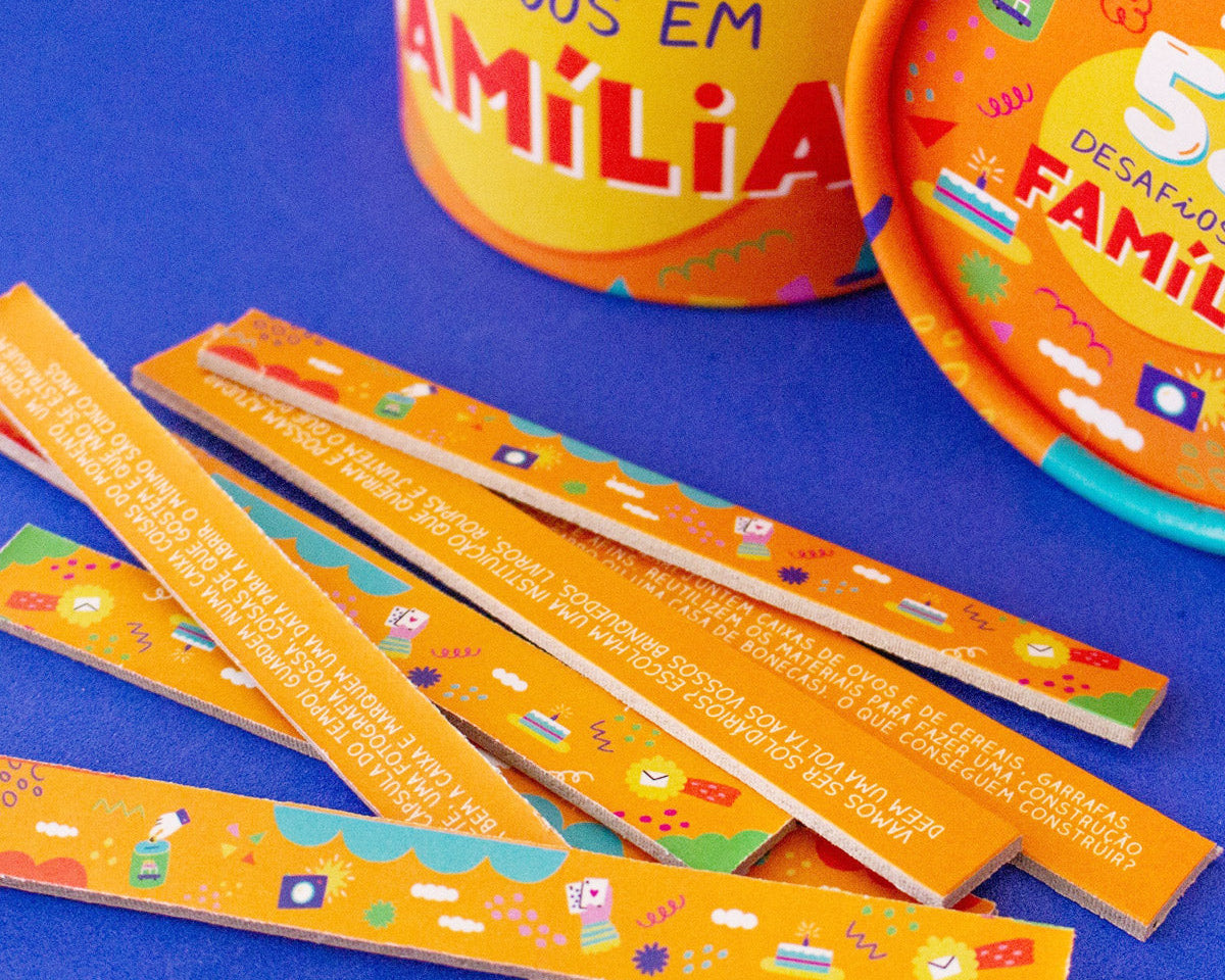 O Jogo "52 Desafios Em Família", do The Happy Gang, é o jogo perfeito para criar laços e memórias alegres em família. Cada um dos 52 cartões, ilustrados por Ana Seixas, propõe um desafio divertido que promove risadas e atividades em conjunto. Simples de jogar: tire um cartão e siga a sugestão.