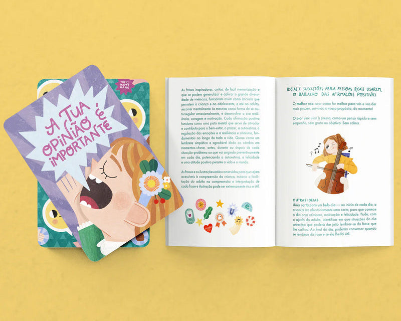 As Flashcards "As Minhas Afirmações Positivas", do The Happy Gang, são uma caixa com 30 cartas ilustradas por Vânia Sacramento, repletas de frases inspiradoras. Ideal para crianças a partir dos 8 anos, este conjunto promove a autoconfiança e oferece um livro com sugestões para explorar as afirmações em família. Perfeito para uso em casa, na escola ou em contexto clínico, estimula o diálogo e o desenvolvimento de habilidades interpessoais.