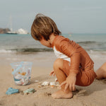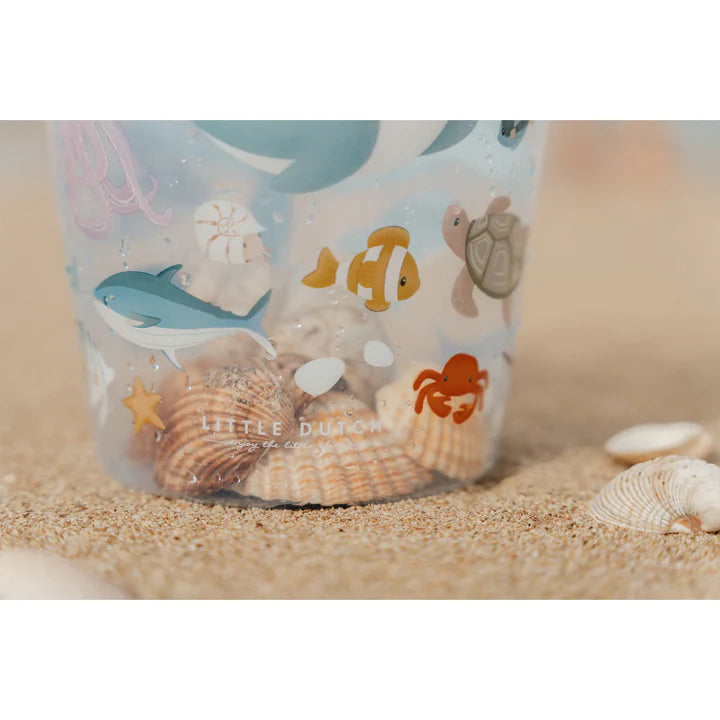 Com este balde de praia do tema Sailors Bay, da Little Dutch, o seu mini vai apanhar todas as conchas e pequenos tesouros. Com as suas bonitas ilustrações de peixinhos, conchas e estrelas do mar, este balde vai fazer as delícias dos mais pequenos. Um brinquedo simples, mas versátil, para um grande dia de diversão na praia!