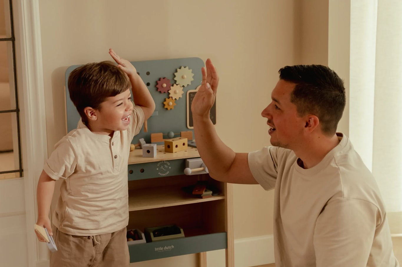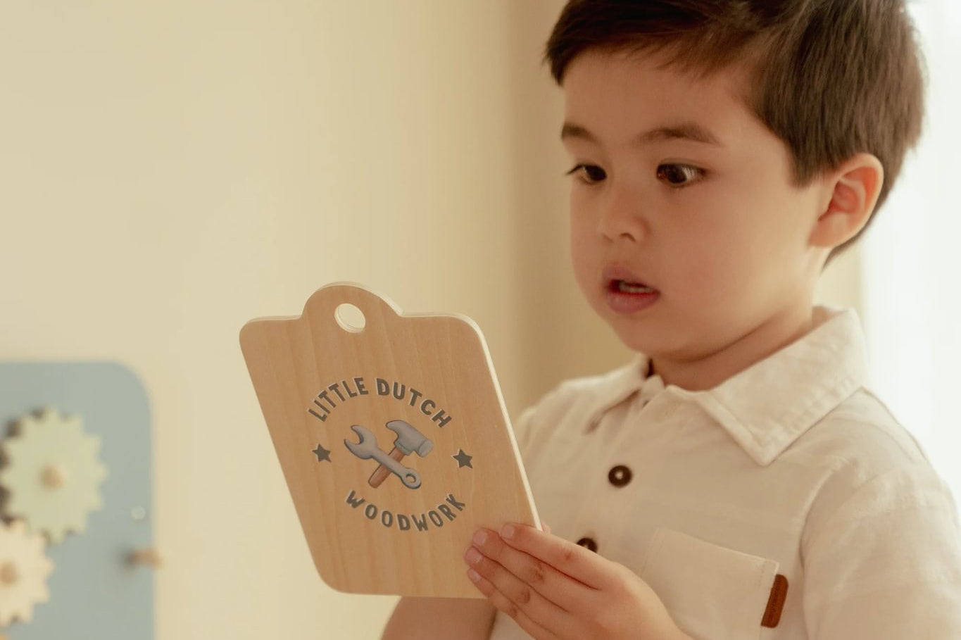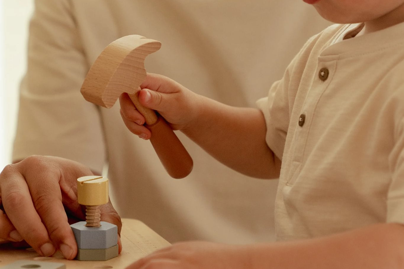 As crianças adoram imitar os pais e esta banca de ferramentas permite-lhes criar e construir objetos como os adultos!