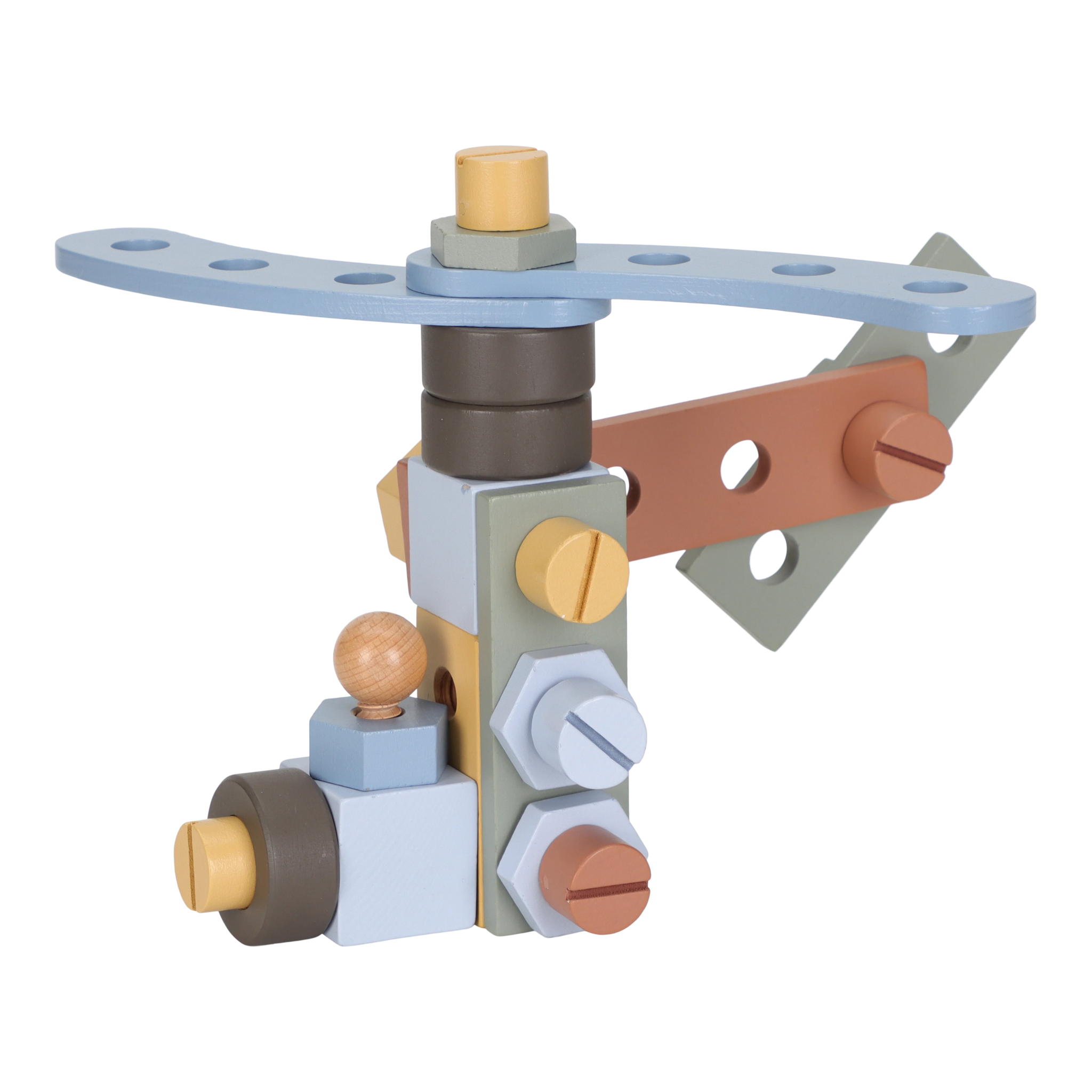 Com esta bancada de ferramentas os mini construtores podem reparar tudo o que possam imaginar, é só pegar nas suas ferramentas e começar a construir. Podem construir um carro ou então guiar-se pela sua própria imaginação e simplesmente inventar.