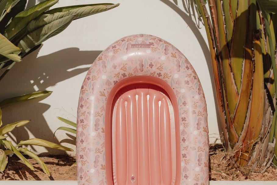 Este barco da coleção Dreams Pink, da Little Dutch é ideal para brincadeiras na água. Um barco que pode flutuar ou ser usado como uma piscina compacta e confortável para os pequenos desfrutarem dos dias quentes de Verão. O barco em rosa é fácil de encher e tem ilustrações marítimas!