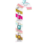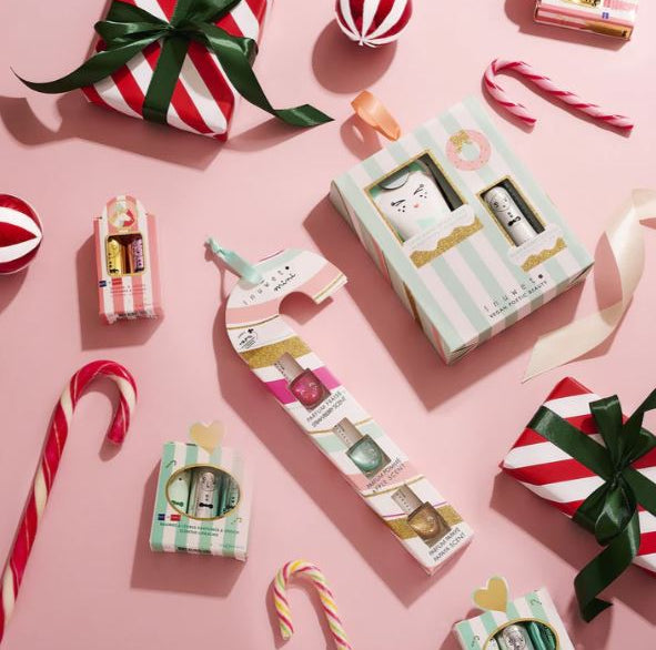 Contém três vernizes à base de água com aromas para crianças: Morango, Maçã e Papaia. Os vernizes para unhas são feitos com 82% de água e até 97% de ingredientes naturais, e são removidos com água.