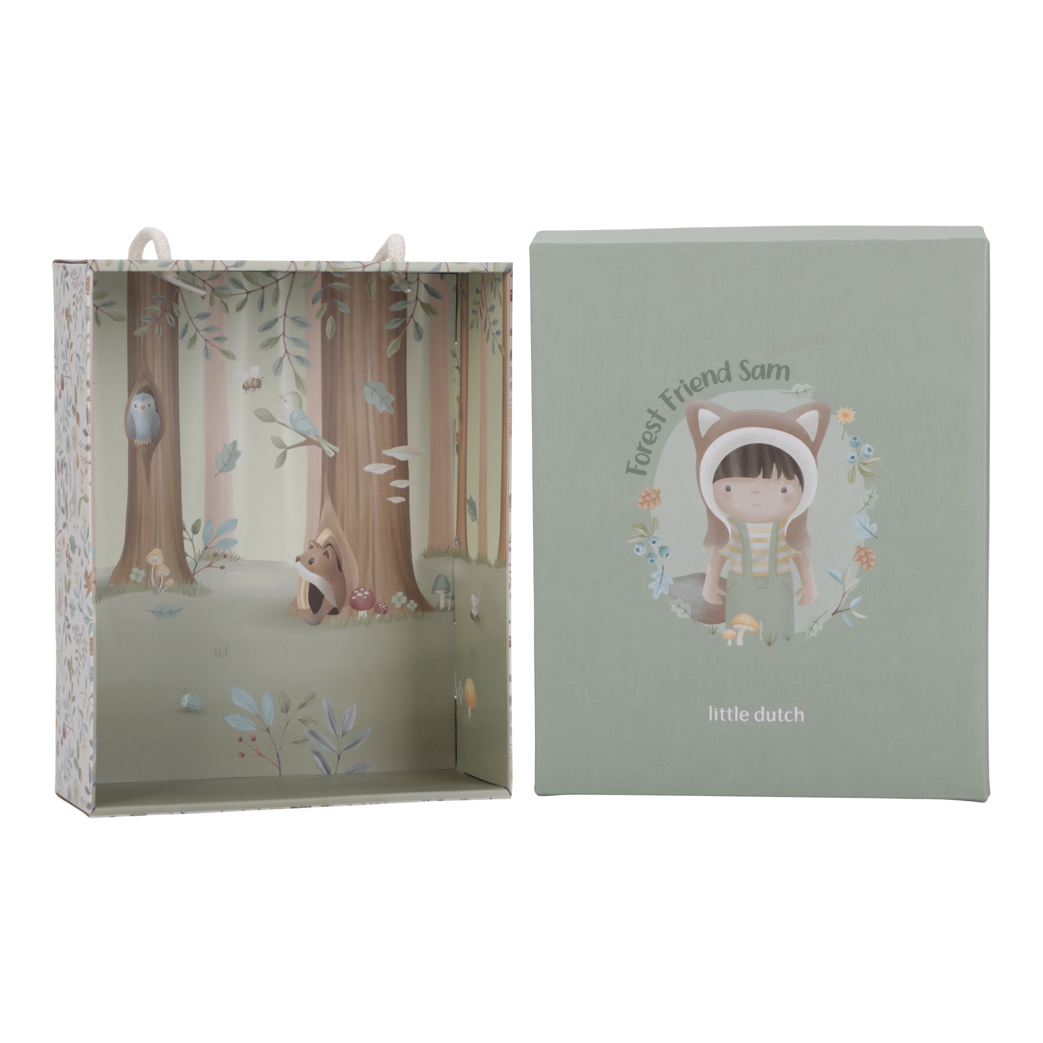 Descubra o amigo da floresta Sam, um adorável boneco de peluche vestido com uma encantadora fantasia de raposa. Junto do seu pequeno amigo raposa, o Sam está sempre pronto para explorar a floresta e descobrir os seus tesouros – desde cogumelos e bolotas até pinhas, sempre acompanhado pelos seus amigos animais.