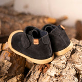 As botas da Igor para além de bonitas são respeitadoras, em camurça no exterior e couro no interior, que prometem deixar os pezinhos dos minis protegidos e confortáveis. Têm biqueira ampla, sola fina e plana, são flexíveis em toda a sua extensão, permitindo movimentos livres. Têm também uma palmilha fina e removível.