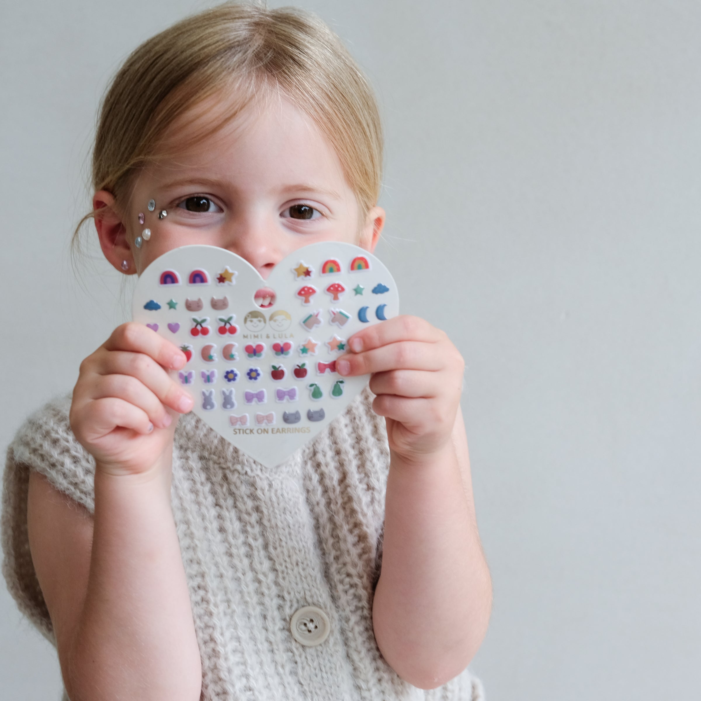 Inclui 25 pares de brincos autocolantes em diferentes designs.