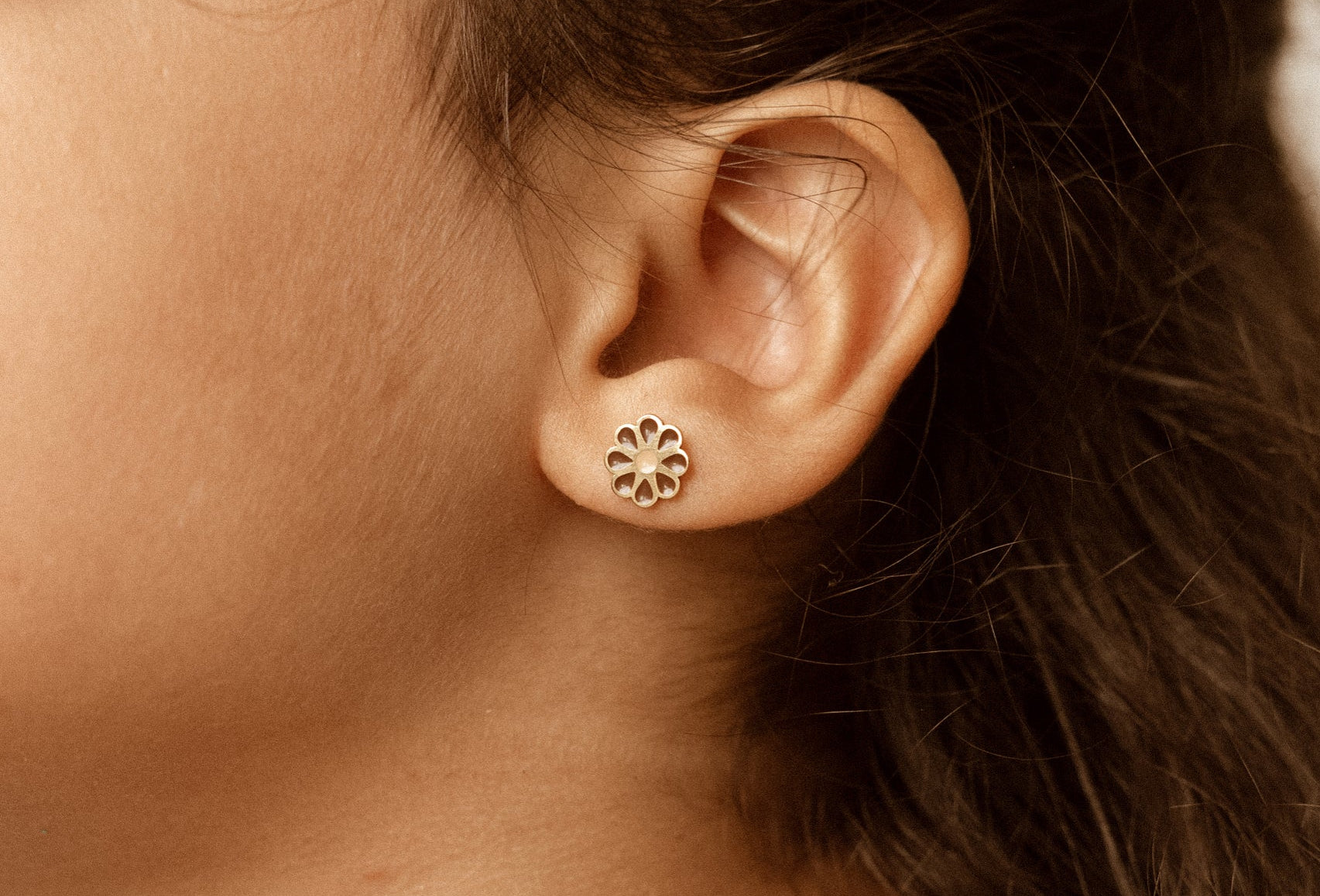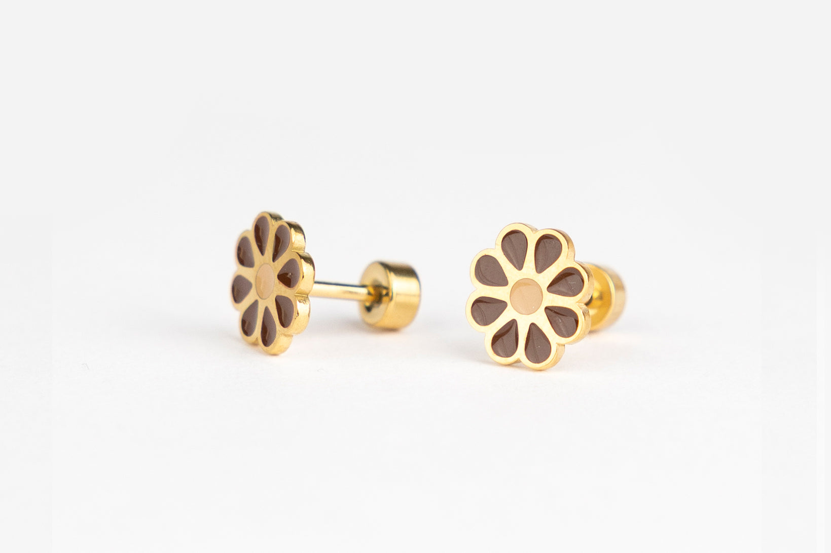 Em aço inoxidável, e com um revestimento em ouro 18k, os nossos novos brincos studs são feitos para durar. São hipoalergénicos, resistentes e seguros para a pele.