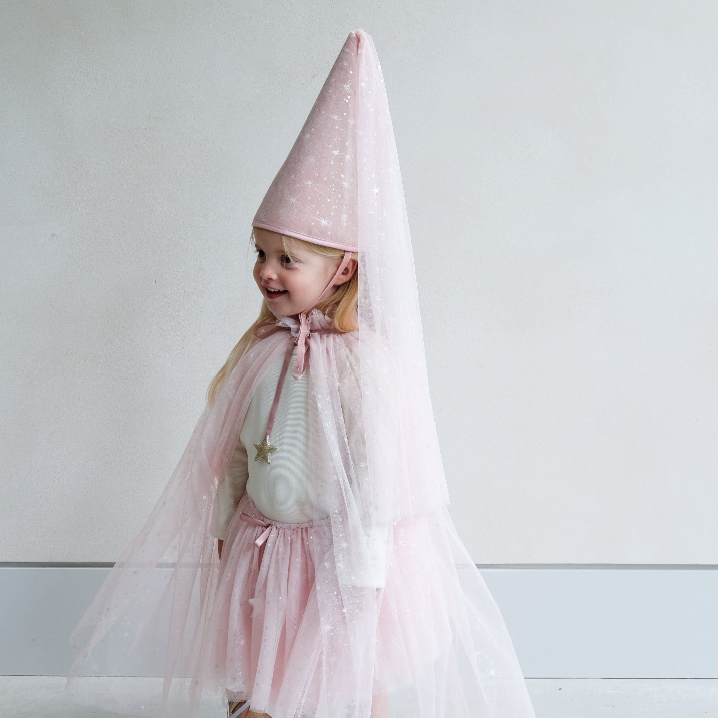 Brilhe e mergulhe num mundo encantado com esta capa de Princesa com brilho! Feita em tule rosa suave e deslumbrante, com estrelas cintilantes, perfeita para dar um toque de charme a um conto de fadas ou complemento a outro disfarce. Pode combinar também com a varinha de magia da mesma coleção!