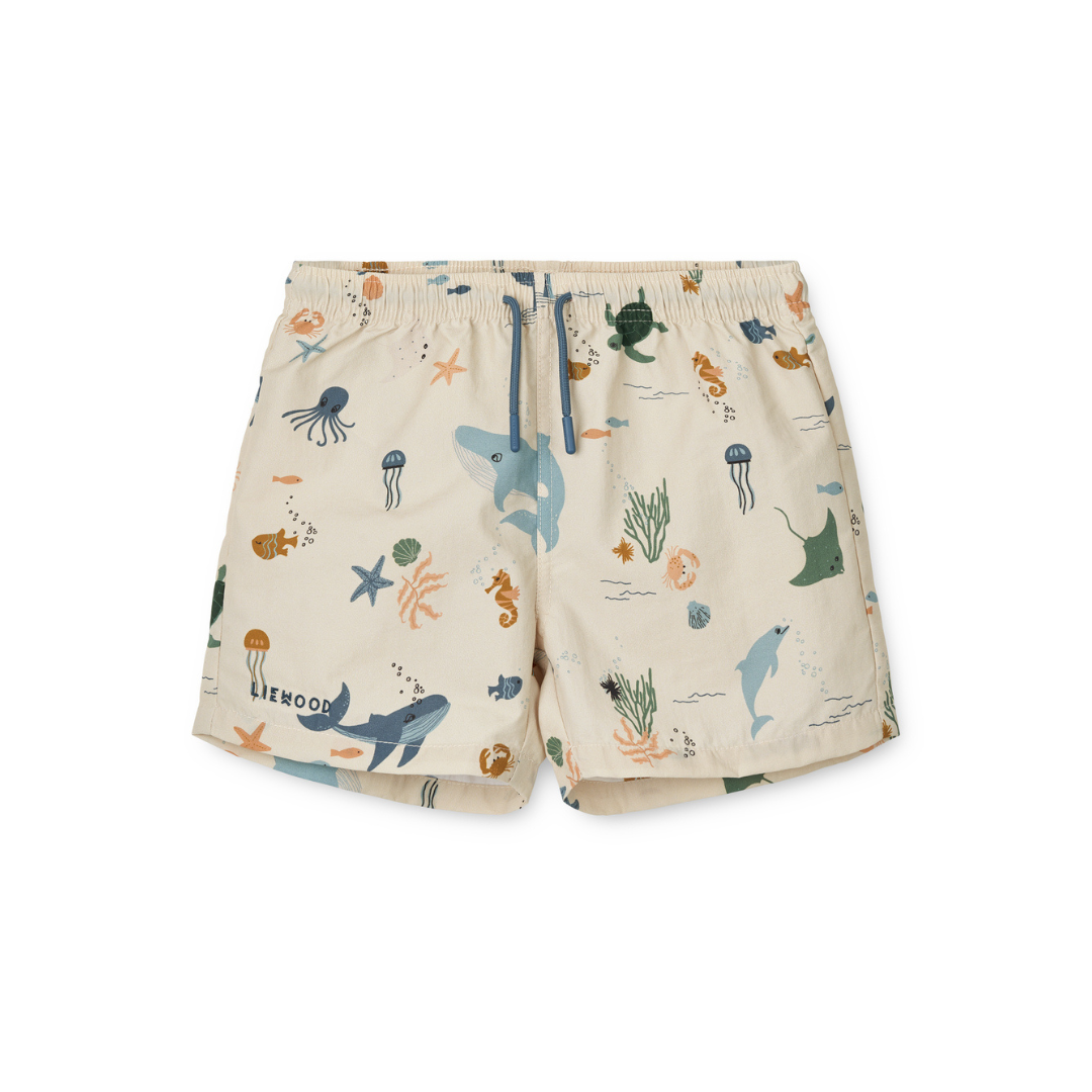 Amorosos calções de banho Aiden Sea Creayure. Para além de bonitos, são também confortáveis e com um fator de proteção UV 40+, esses calções são perfeitos para se divertir ao sol sem preocupações. Totalmente forrados, com um cordão ajustável na cintura e de rápida secagem para maior conforto, estes cações de banho são essenciais para as aventuras do seu mini!