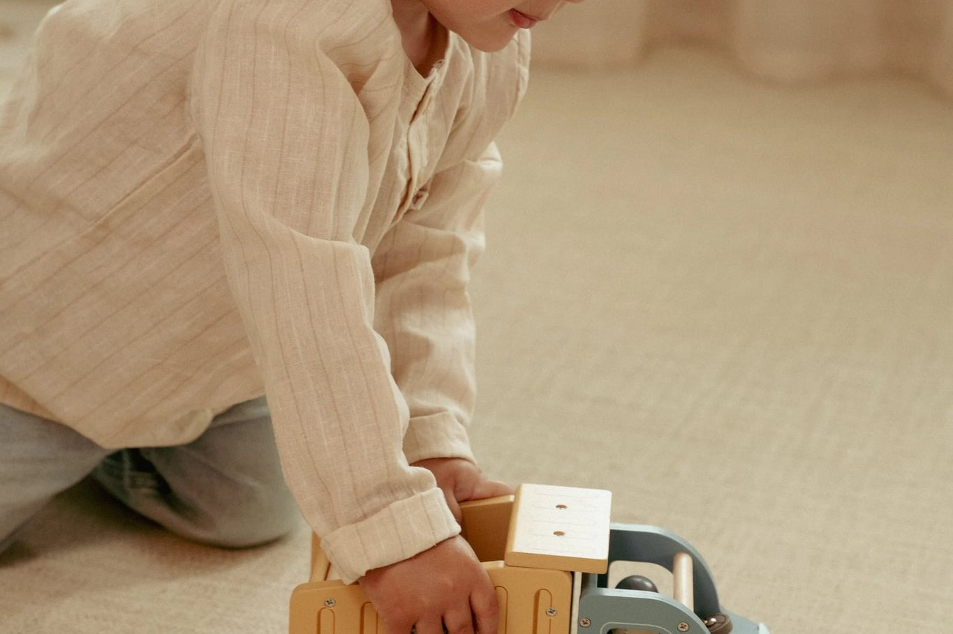Com um design cuidado e pintura em cores suaves, este brinquedo incentiva o jogo simbico, a coordenação motora e a resolução de problemas, tornando-se uma excelente opção para aumentar a coleção de veículos do seu mini.