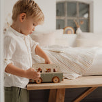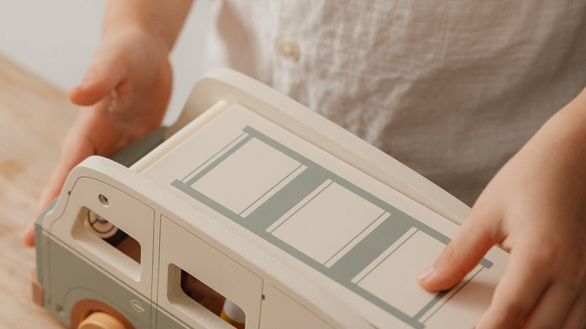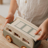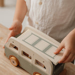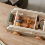 Preparados para a aventura? Esta carrinha combi, da Little Dutch, é um brinquedo que vai animar as férias dos mais pequenos. É ideal para desenvolver a coordenação motora e a imaginação. Vão poder brincar ao faz de conta, tal como, surfar, passear, encostar a carrinha junto à praia para dormirem, aventuras não vão faltar e a diversão está garantida. O teto desta combi é removível para que os 4 bonecos possam caber facilmente e a porta traseira também se abre. Todos os elementos são feitos de madeira e decorados com belas cores!