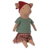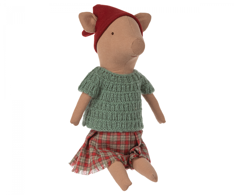 Esta amorosa e macia porquinha está vestida com roupas clássicas de Natal. Para além de um bonito peluche, ficará também perfeita para decorar.