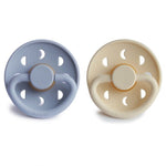 Pack de duas chupetas Frigg, da coleção Moon Phase, em latex. Frigg Moon Phase é uma chupeta inspirada na lua em movimento. As mudanças nas fases da lua são refletidas no exterior da chupeta e funcionam como ventilação para a pele sensível do bebé. Frigg Moon Phase também representa um amor forte e eterno, assim como o ditado popular “Amo-te daqui até à lua”!