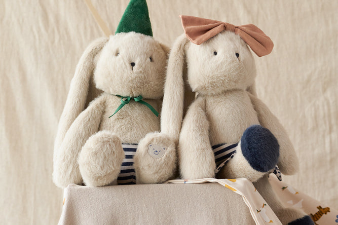 Descubra o coelhinho de peluche Bertrand, da Liewood, um coelho fofinho vestido com um estilo festivo para celebrar o 10º aniversário da marca. Com o seu divertido chapéu, está pronto para celebrar os melhores momentos.