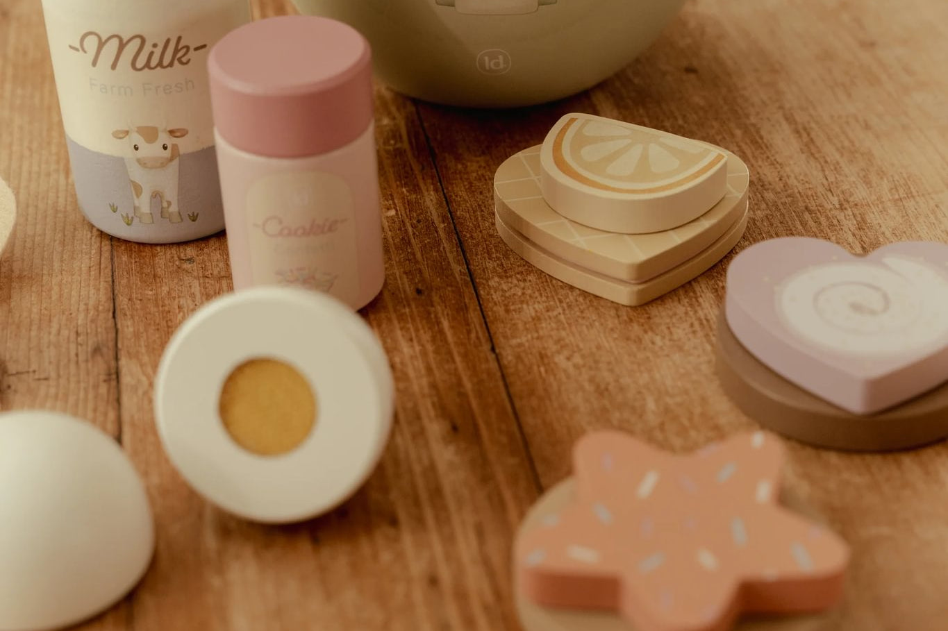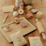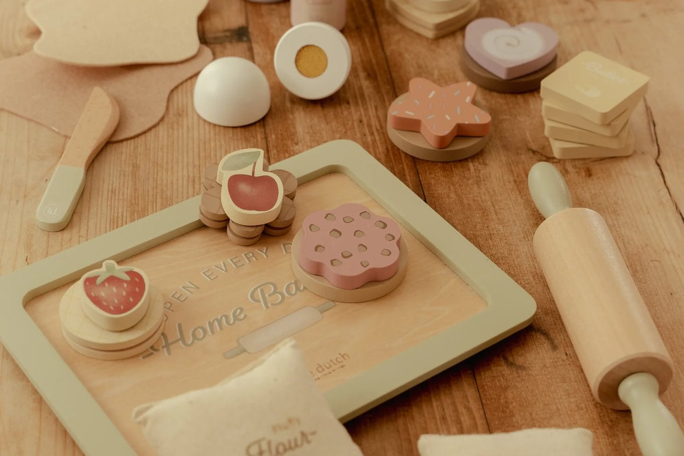 Está na hora dos mini chefs cozinharem algo muito delicioso! Com este conjunto de pastelaria em madeira, os mini pasteleiros vão poder aprender tudo sobre preparar bolachas