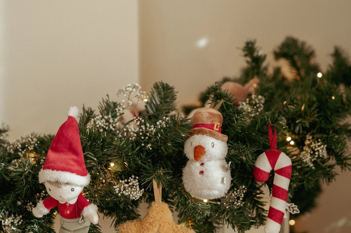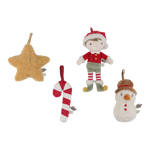 Complete a sua árvore de Natal com este conjunto de 4 enfeites de Natal em peluche. Esta caixa inclui o pequeno Jim de Natal, um boneco de neve alegre, uma bengala doce festiva e uma estrela radiante – todos igualmente macios e encantadores.