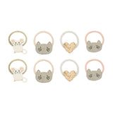 Digam olá a estes bonitos mini elásticos brilhantes com fofos gatinhos e ratinhos! Quatro carinhas fofas de gatinho, dois ratinhos e dois corações dourados brilhantes - misture e combine para criar todos os tipos de estilos adoráveis!