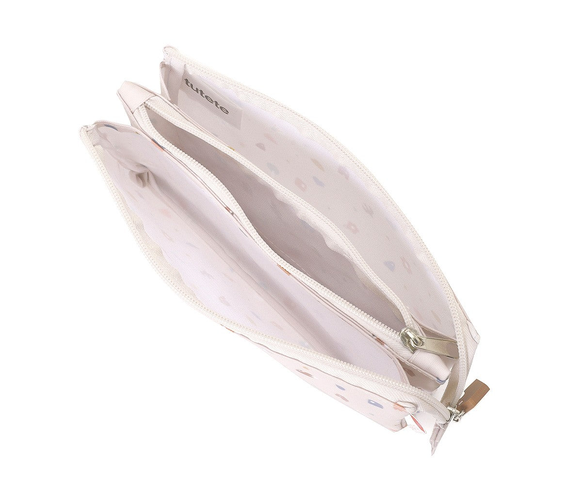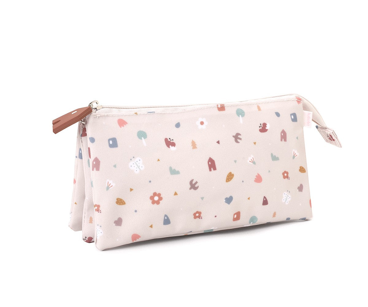 Este bonito estojo triplo, com o tema de formas geométricas, é bastante prático para o seu mini levar para a escola, tem espaço para todo o material que irá precisar, desde canetas, lápis, marcadores a réguas ou borrachas. Este estojo poderá ser um ótimo complemento à mochila ou outros itens da mesma coleção!