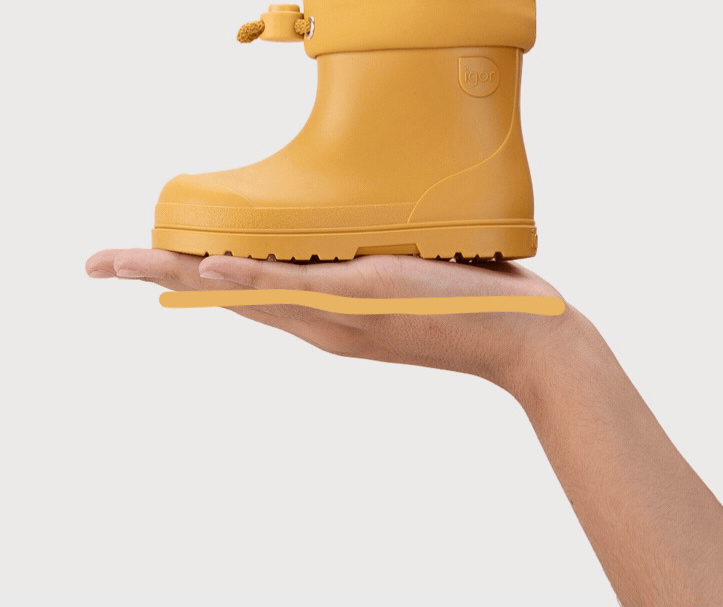 As Galochas Mendi são um dos novos modelos Barefoot, da Igor. Um modelo inovador que permite aos minis brincarem à chuva, com o máximo conforto e simulando o conceito de "estar descalço". Estas galochas são muito macias e flexíveis em toda a sua extensão, a sola é fina, plana e sem elevações. Não tem contraforte e a ponteira é ampla, para garantir o livre movimento dos dedinhos.
