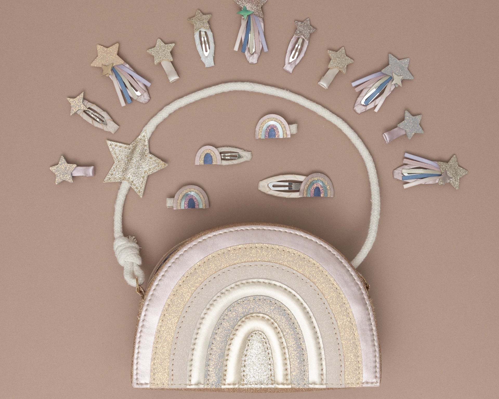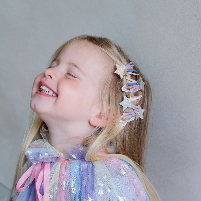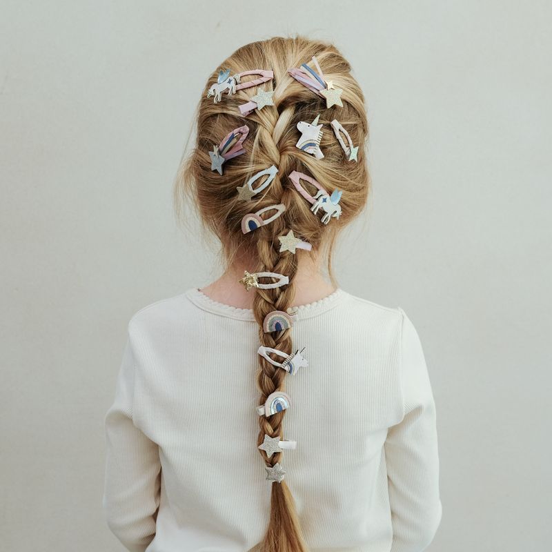 Os mais pequenos vão ficar radiantes com este pack de 4 ganchos super fofinhos e brilhantes! Perfeitos para festas ou simplesmente para dar um toque de diversão no dia a dia!