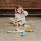 Para este jogo de argolas, da Little Dutch, os mais pequenos precisam de foco e concentração e habilidade de acertar ao alvo.