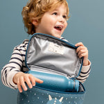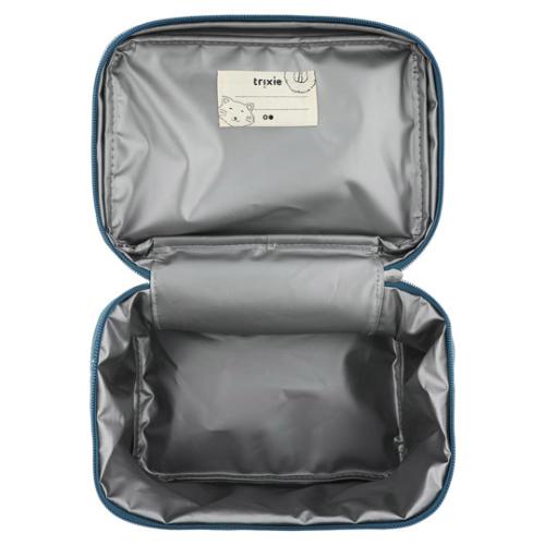 Agora, vai conseguir levar o seu almoço favorito nesta prática lancheira térmica, que manterá o seu almoço à temperatura ideal. O exterior da lancheira também tem um revestimento externo que a torna à prova d'água! As orelhas flexíveis adicionam um toque engraçado e a alça na parte superior torna a mais fácil de transportar e compacta. A lancheira tem um fecho grande para fácil abertura. Há também uma etiqueta de nome na parte interna para que não precise se preocupar em perder seu companheiro de almoço. Esta divertida lancheira tem um espaço perfeito para uma garrafa de água Trixie e caixas de sancks.