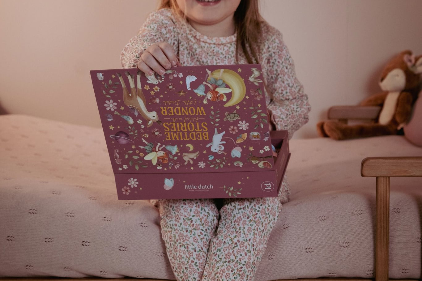 Dê vida às histórias desta lanterna projetor para minis! Esta lanterna especial contém 12 discos, cada um com a sua própria história que ganha vida através de belas ilustrações únicas que projeta na parede. Cada história é complementada por um folheto correspondente com as ilustrações. A lanterna do projetor tem um cabo de madeira resistente e funciona com bateria, para que possa leva-la para qualquer lado. Depois da história, basta guardar a tocha e todos os acessórios na bonita caixa de arrumação. Perfeito para minis que adoram descobrir e vivenciar histórias.