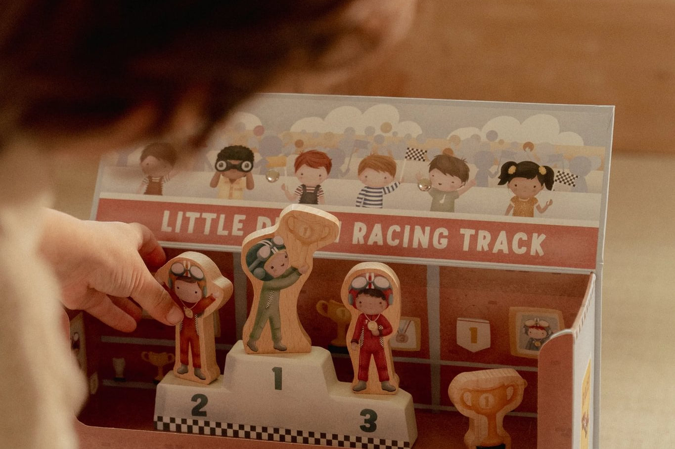 A mala de corrida com pista, da Little Dutch, transforma-se num verdadeiro cenário de competição o cheio de emoção! Assim que abre, revela uma pista de corrida completa, com arquibancada, linha de chegada, pódio e muitos outros detalhes que tornam a brincadeira ainda mais realista.