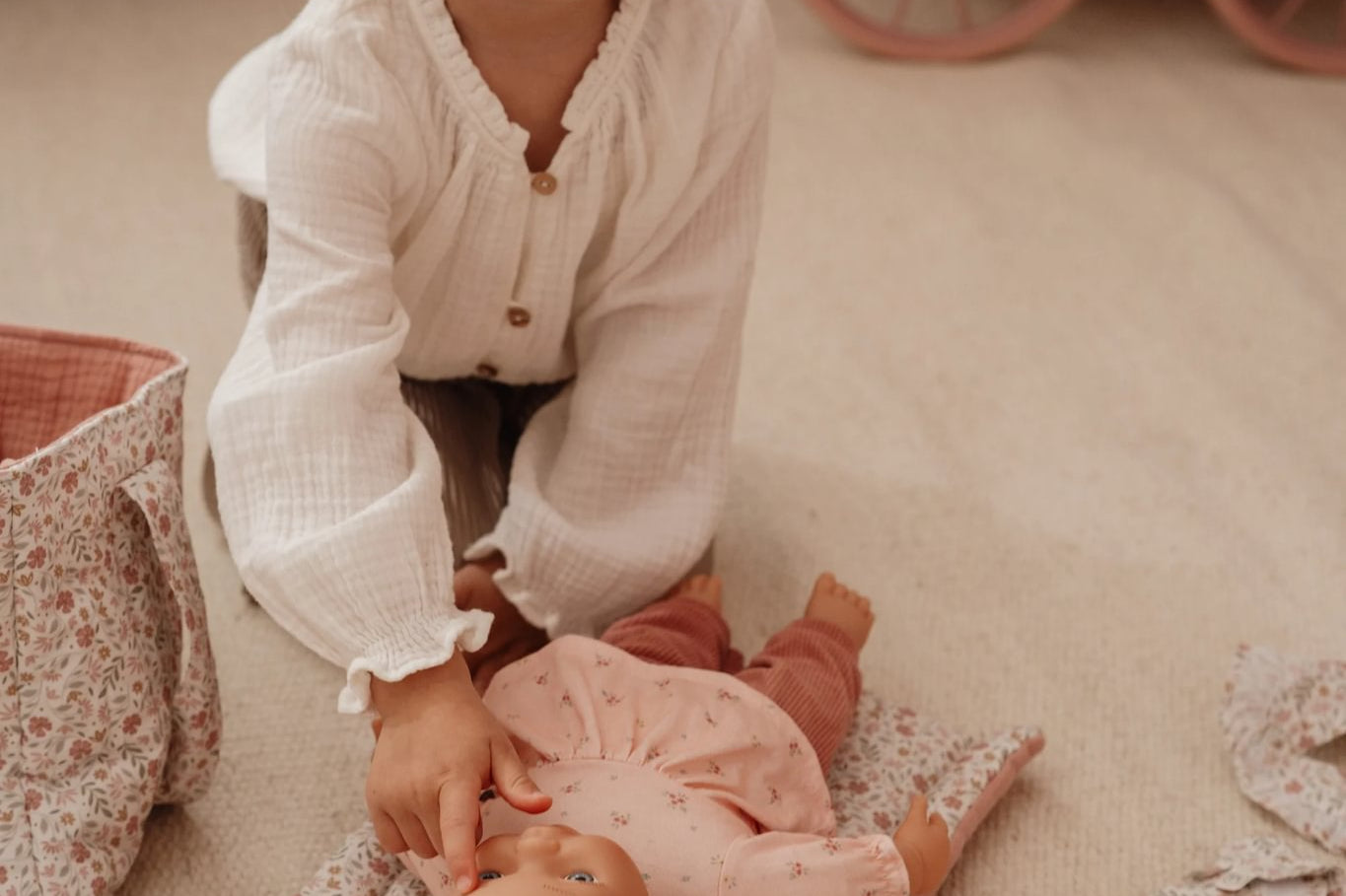 Esta bolsa incentiva o cuidado, a empatia e o jogo imaginativo, ajudando a criança a desenvolver habilidades sociais e emocionais desde cedo.