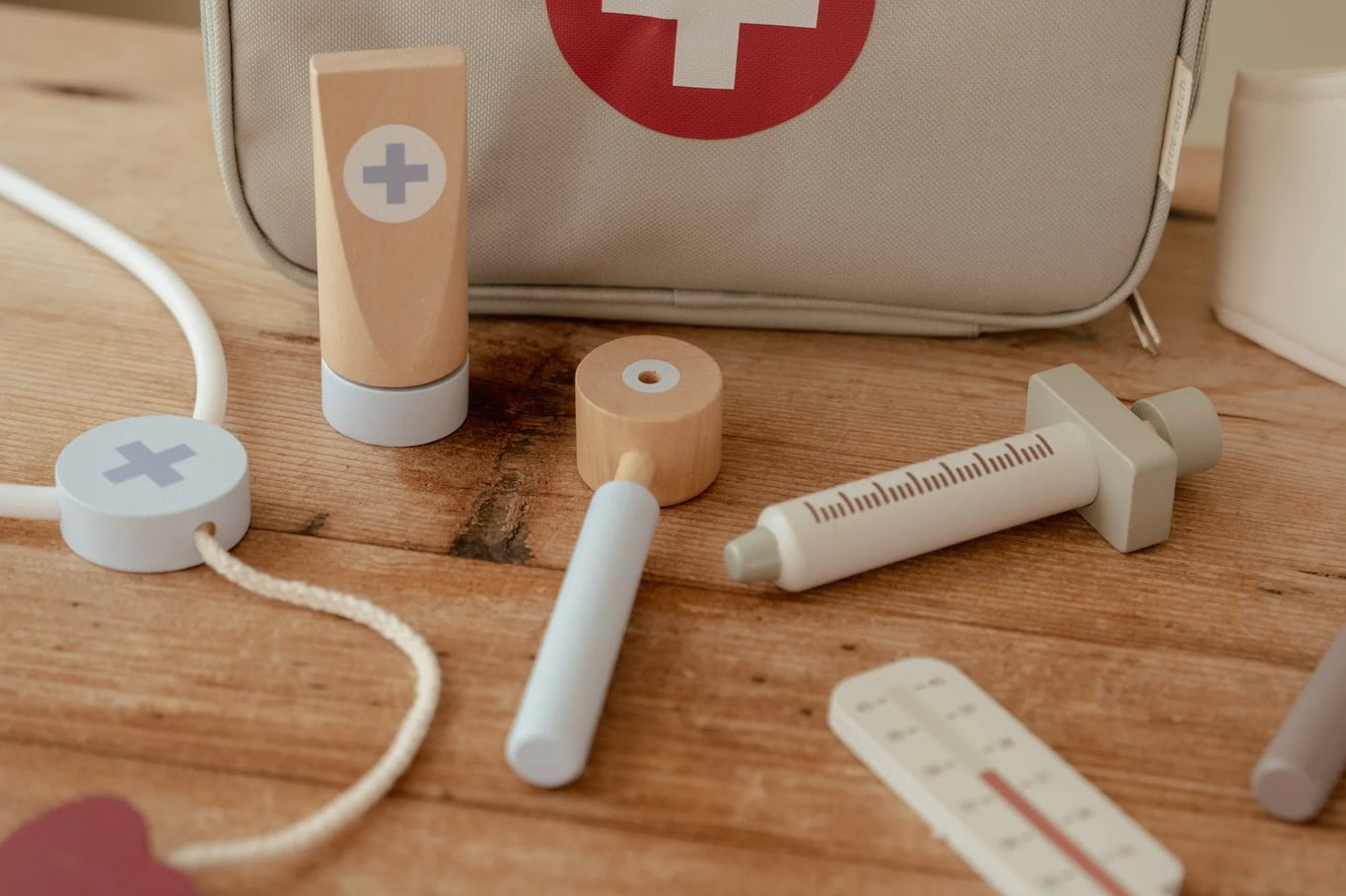 Doutor, pode dar uma vista de olhos? Com este conjunto completo de médico de madeira, o seu mini está totalmente preparado para cuidar de doentes e vai adorar brincar ao faz de conta.