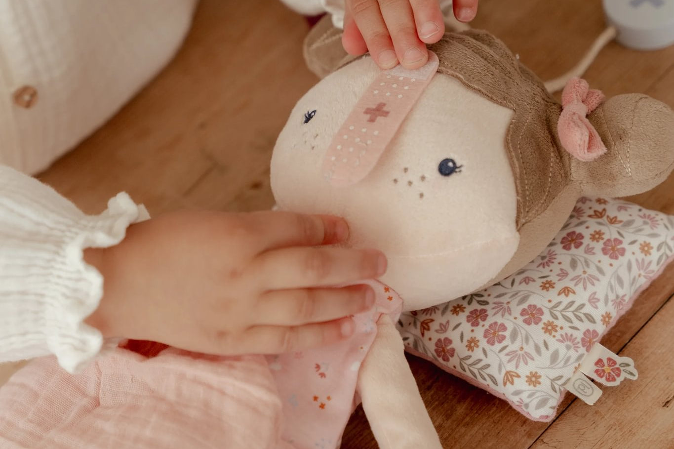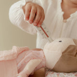 Esta mala de médico em tecido incluí todos os instrumentos médicos essenciais, como termómetro, seringa, pensos, estetoscópio e monitor de pressão arterial. Até uma touca de médico está incluída! Perfeito para brincadeiras imaginativas de faz de conta e para se familiarizar com as consultas médicas. Quem é o próximo doente?