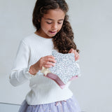 Esta amorosa mala é o acessório perfeito para a sua mini estrela! Com muito brilho e em veludo rosa suave para dar um toque de elegância aos mais pequenos.
