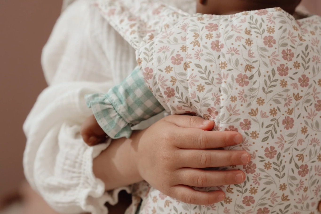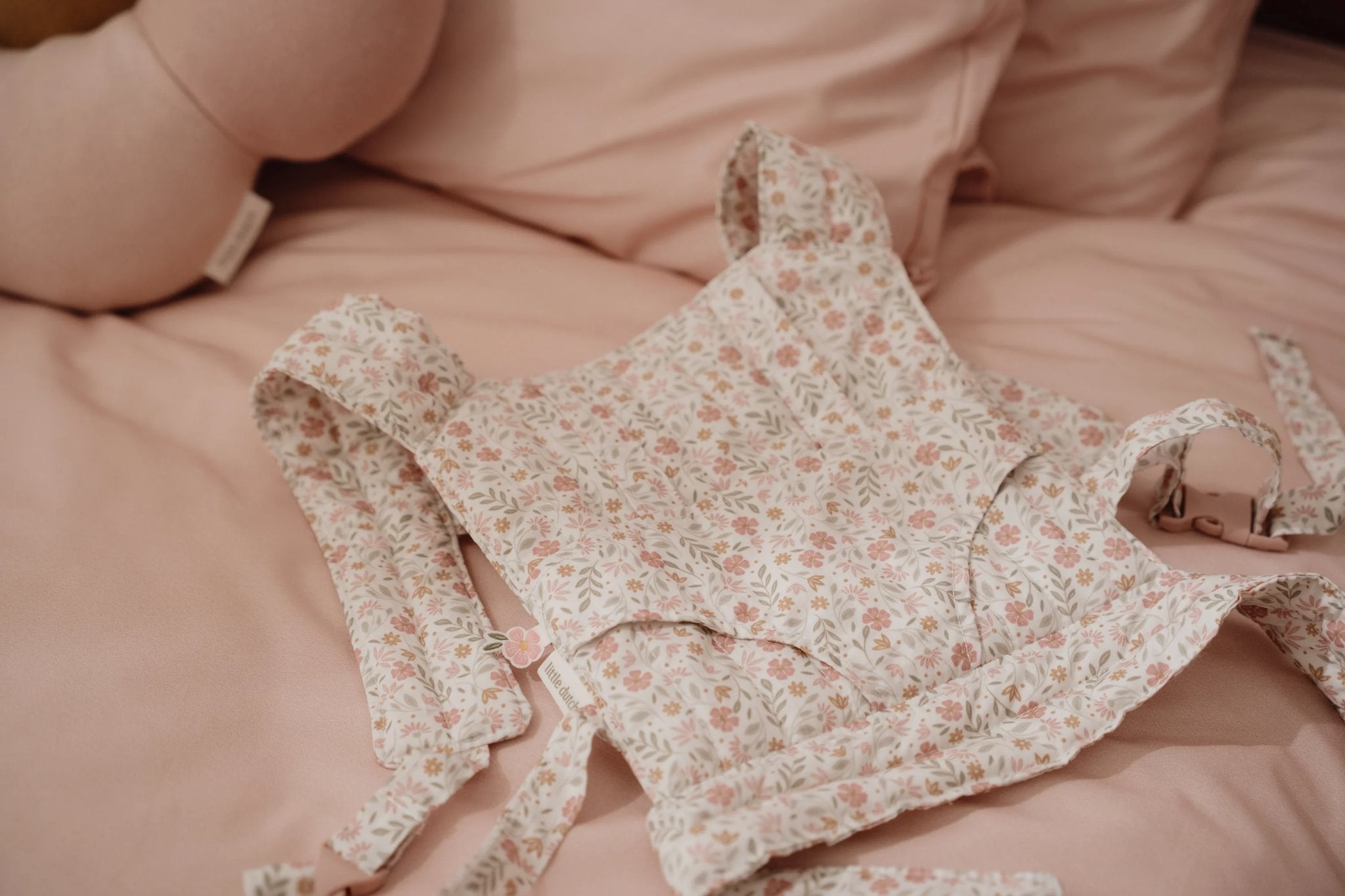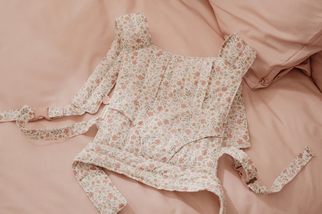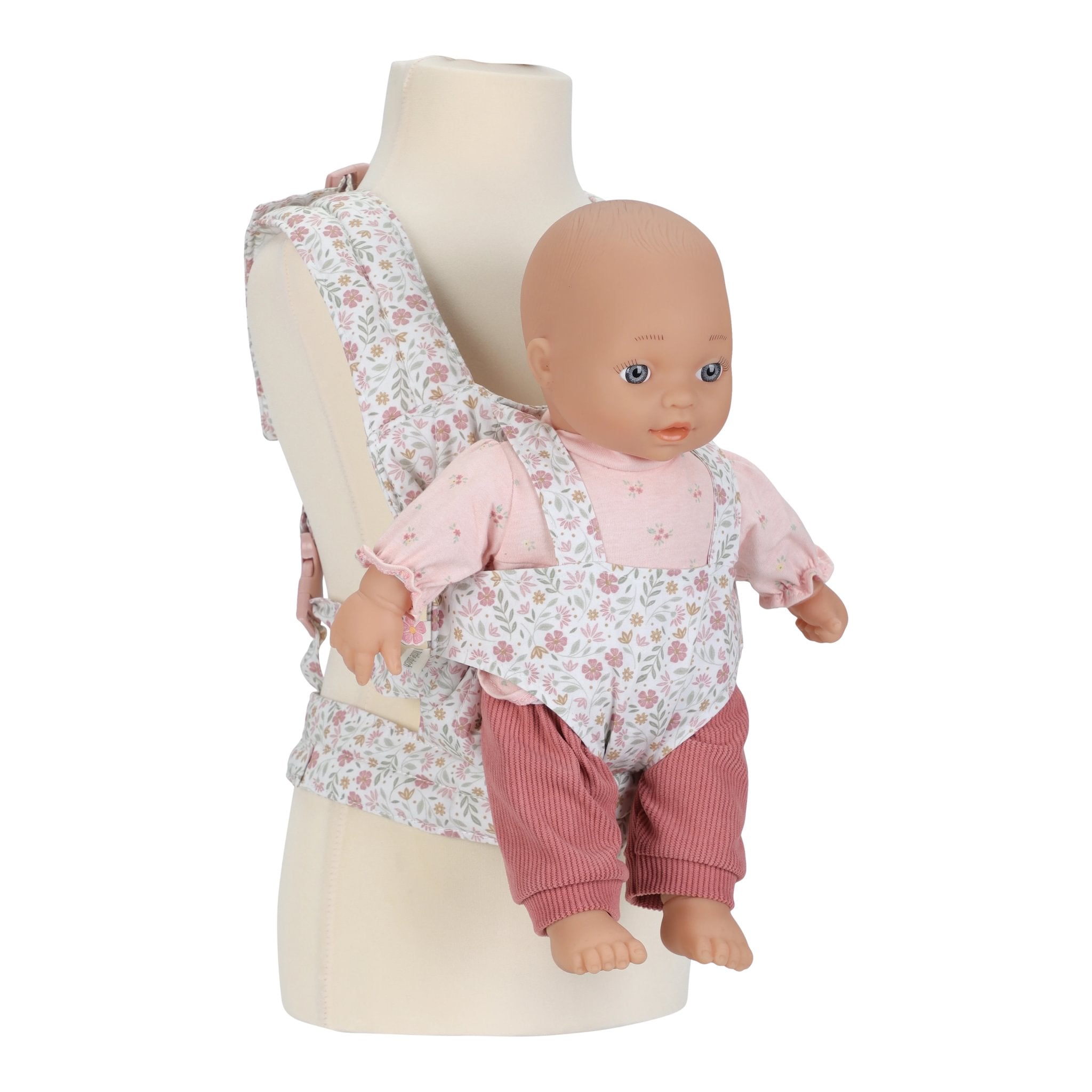 Este adorável marsúpio de brincar foi criado especialmente para minis que gostam de cuidar e imitar os adultos. Feito em tecido suave e confortável, apresenta um padrão encantador de flores em tons suaves de rosa, verde e bege, criando um visual delicado e acolhedor.
