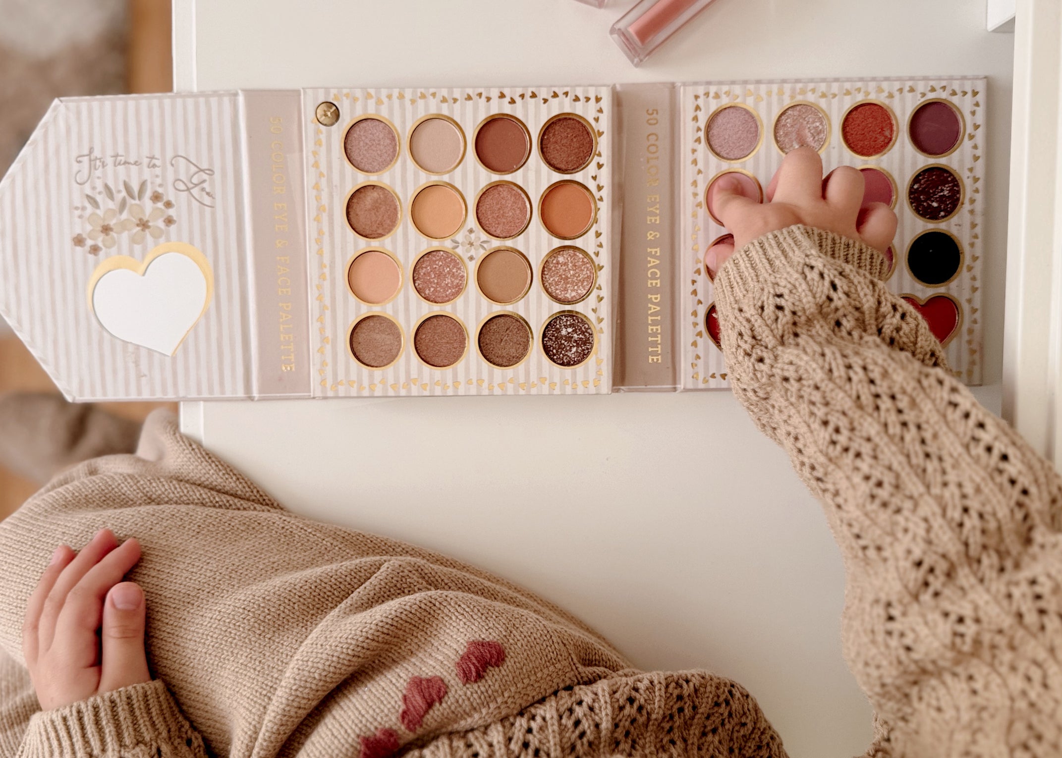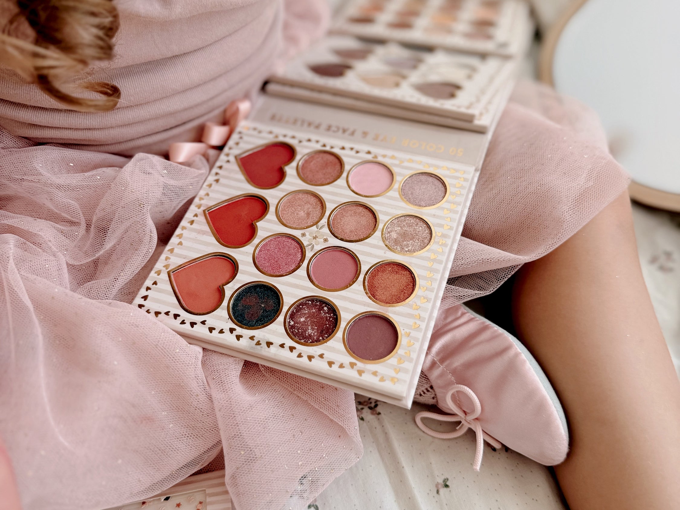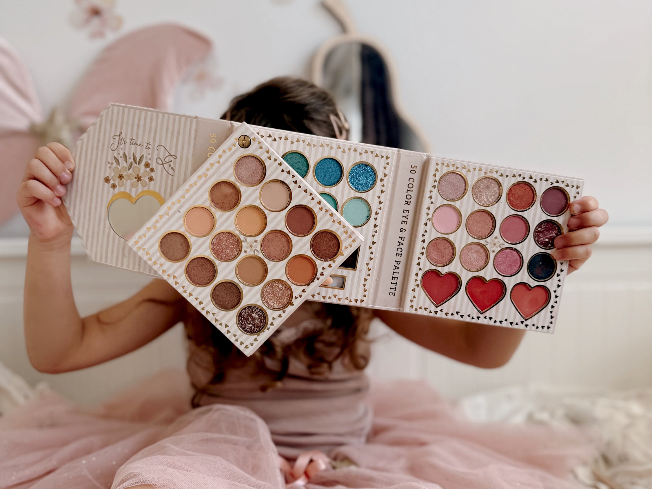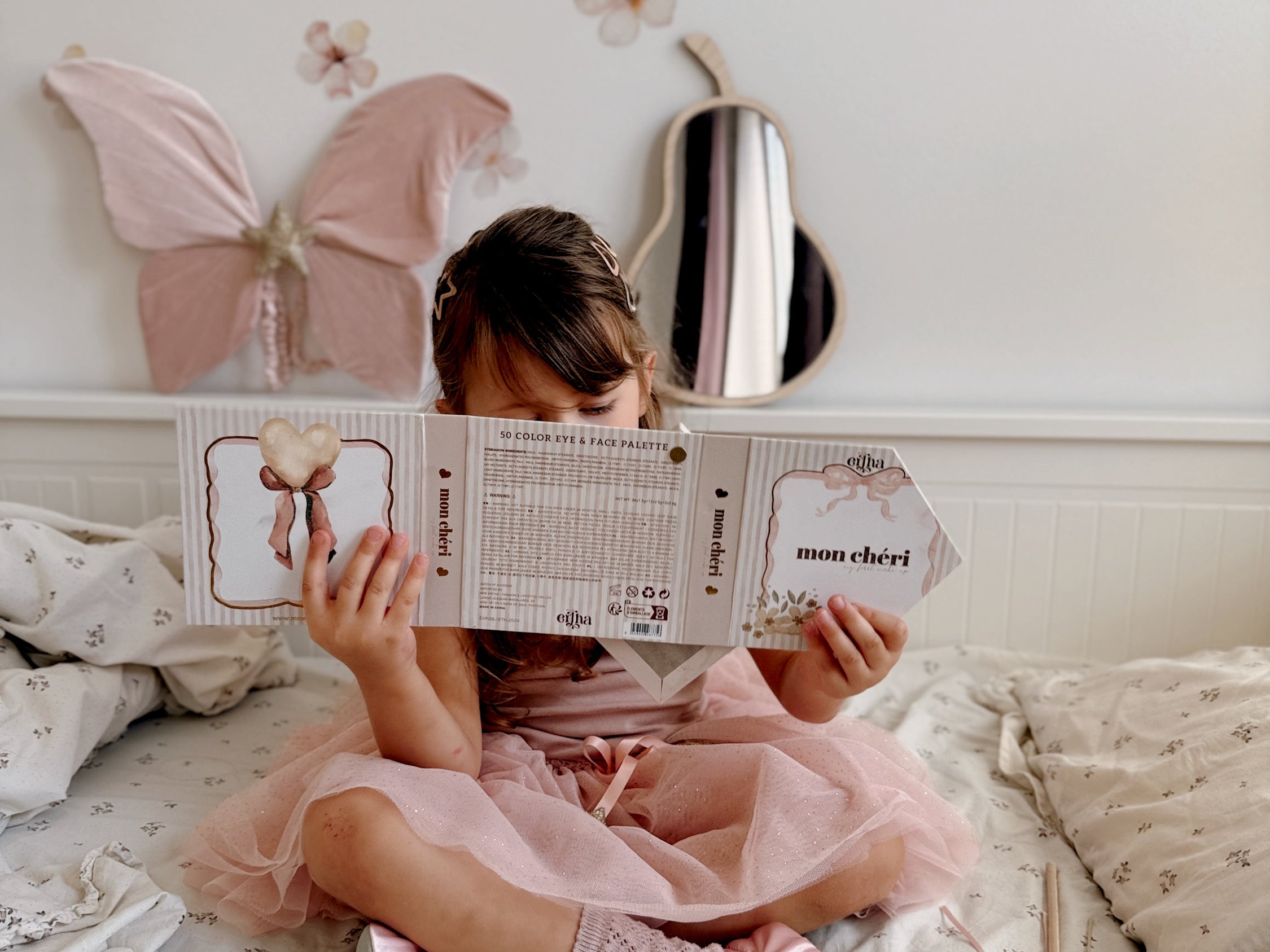 A nova paleta Mon Chérie, tem sombras de 50 cores para olhos e rosto. Deixe a imaginação das crianças brilhar com esta paleta de maquilhagem divertida feita especialmente para elas! Com 50 sombras deslumbrantes cheias de brilho e cor, este conjunto proporciona horas de diversão e criatividade.