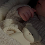 Este mordedor feito de borracha 100% natural tem um adorável formato de ursinho de peluche e várias texturas em sua superfície que ajudarão a acalmar as gengivas do seu pequenino durante o processo de dentição, além de oferecer experiências sensoriais divertidas e seguras.