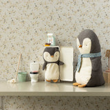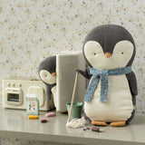 Um pinguim é uma personagem engraçada. É confecionado em tecidos macios e possui bolinhas nas costas para que possa assentar facilmente. Usa um lenço quentinho para os dias frios.