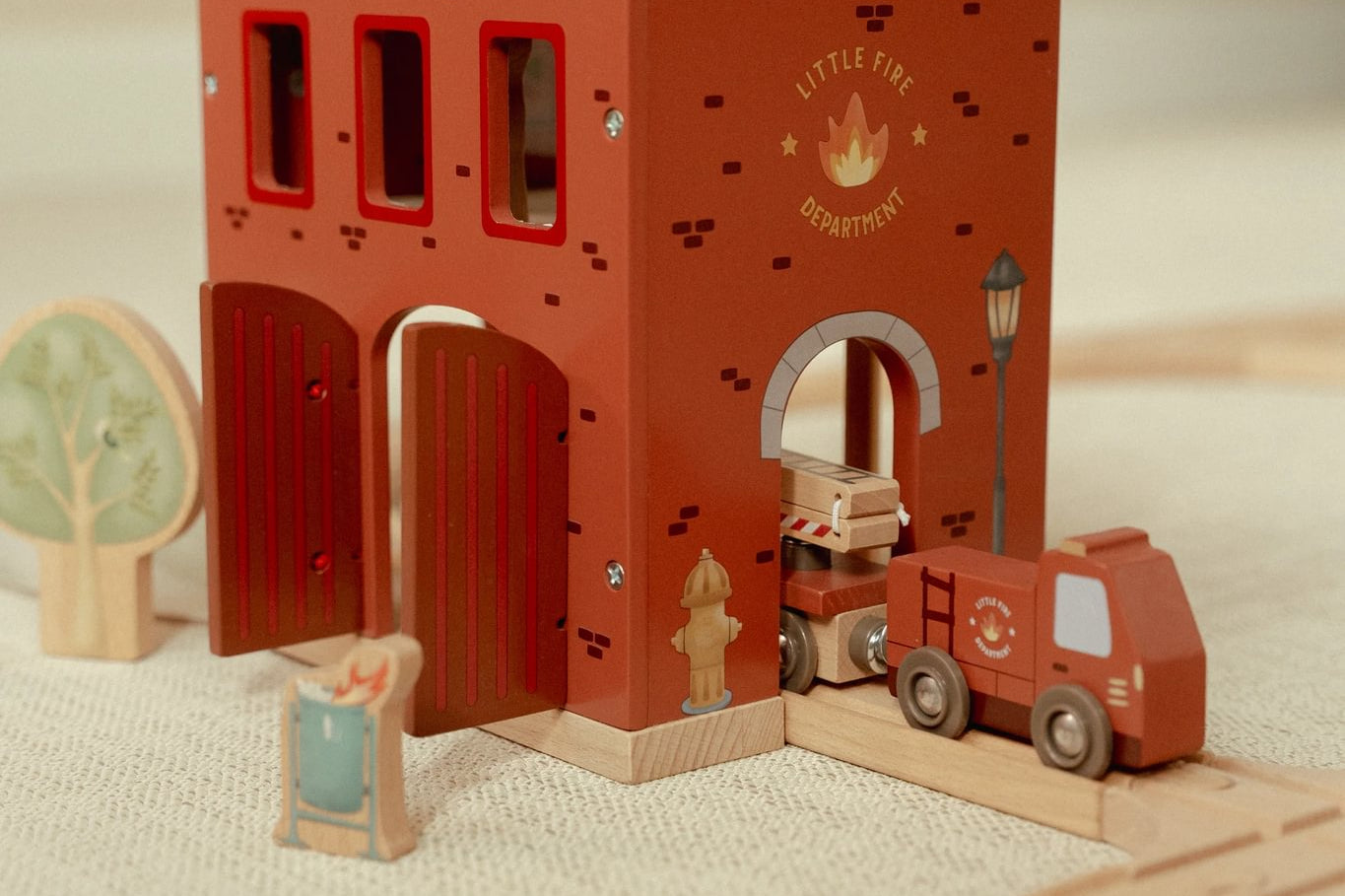 O Set ou quartel de Bombeiros em madeira, da Little Dutch, é perfeito par minis que adoram ação, salvamentos e muita imaginação! Este conjunto encantador vem com um edifício em madeira de dois andares, com portas e janelas recortadas, representando um quartel realista em tons de vermelho tijolo.