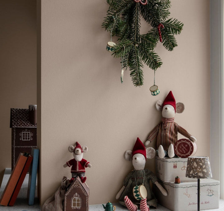 Esta amorosa e macia ratinha está vestida com roupas clássicas de Natal. Para além de um bonito peluche, ficará também perfeita para decorar este Natal. O chapéu é removível e pode ser usada o ano todo em qualquer ocasião.