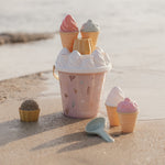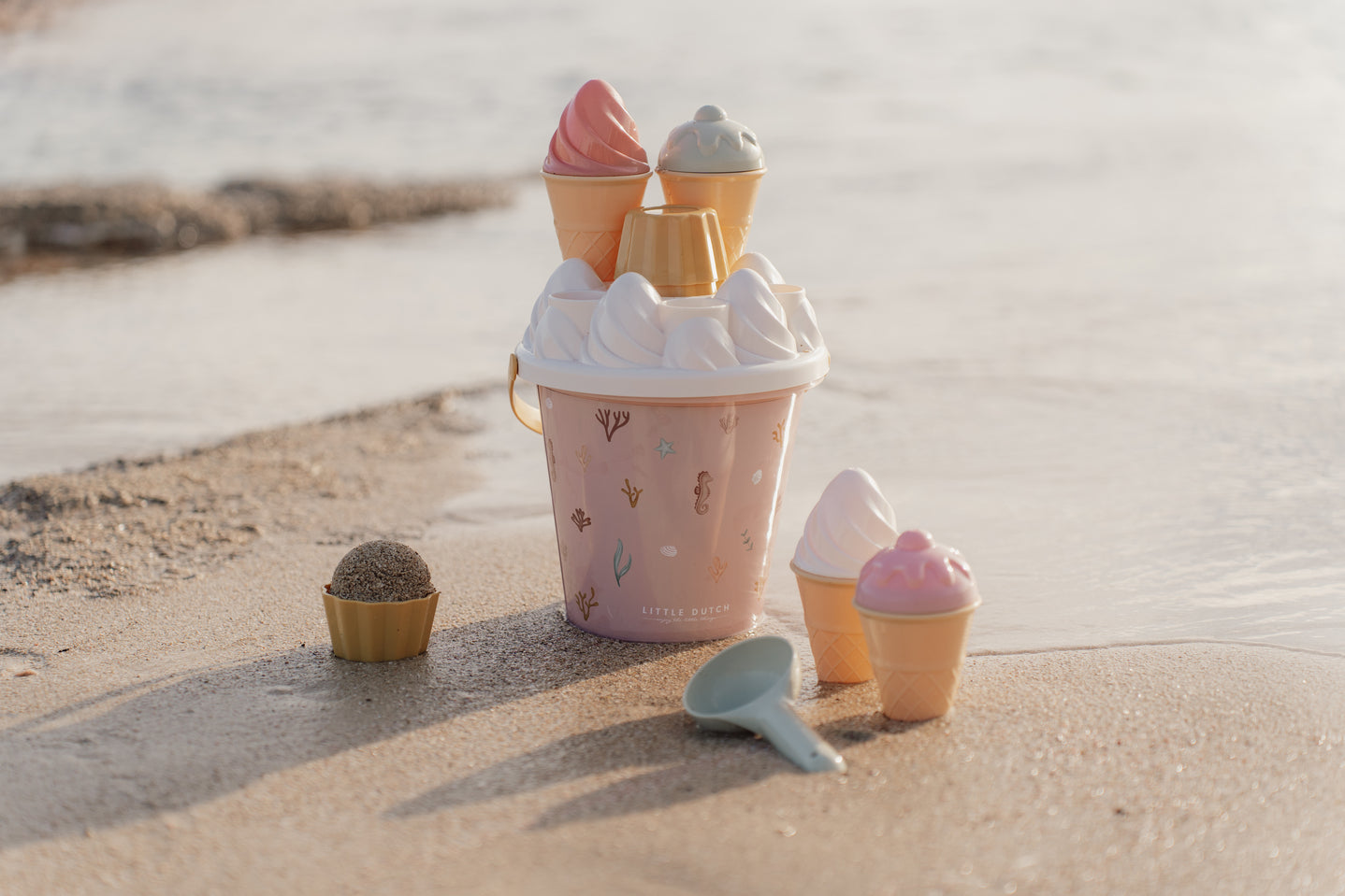 Com este set de praia com gelados, da Little Dutch, estão garantidas horas de diversão ao ar livre! Um conjunto muito completo e divertido com acessórios para que o seu mini possa dar asas à imaginação! Este conjunto vem com quatro cones, quatro bolas de gelado, três formas de cup cake, uma colher para servir os docinhos, uma pequena peneira e o balde. E agora, vamos escolher o sabor dos gelados? Qual o seu preferido? O melhor de tudo é que todos os acessórios cabem dentro do balde para que possa ser fechado e facilmente transportado sem ocupar muito espaço!