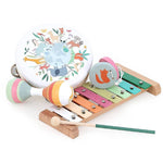 Que comece a festa! Este conjunto musical de madeira inclui 5 instrumentos: pandeireta, xilofone, maracas, maracas duplas e castanholas, todos ilustrados por Sarah Betz-Cubeely. Ideal para despertar a paixão pela música desde cedo.
