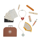 Alerta para mini veterinários, para o cão Dinkum! Descubra um mundo de brincadeiras com este set de veterinário. Este set está equipado para todos os exames necessários para cuidar do seu animal de estimação, promove a criatividade e a imaginação enquanto explora o mundo do cuidado, da gentileza e da diversão sem fim. Abra a mala de cartão e irá encontrar tudo o que precisa para cuidar do seu Dinkum. As crianças vão adorar o termómetro magnético de madeira, o estetoscópio, a seringa, o tubo de pomada, as bandas curativas e a coleira. Poderá também tirar notas no bloco de registos e poderá dar o diagnóstico ao paciente!