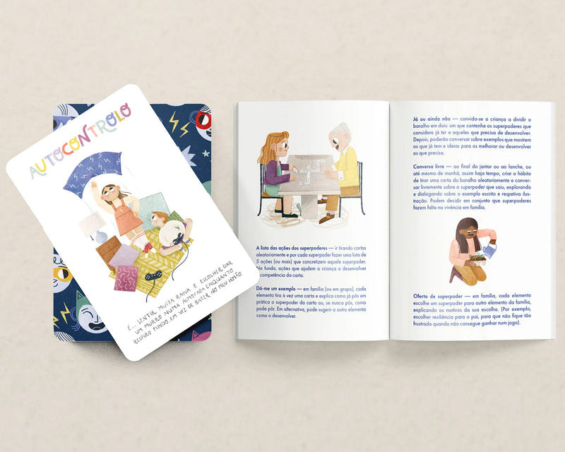 Nas Flashcards "Os Meus Superpoderes" do The Happy Gang vai encontrar 30 cartas com capacidades fantásticas que podes descobrir e desenvolver, e um livro que ajuda a encontrar maneiras de as explorares em família. Ideal desde os 3 anos, promove o desenvolvimento pessoal e interpessoal das crianças.