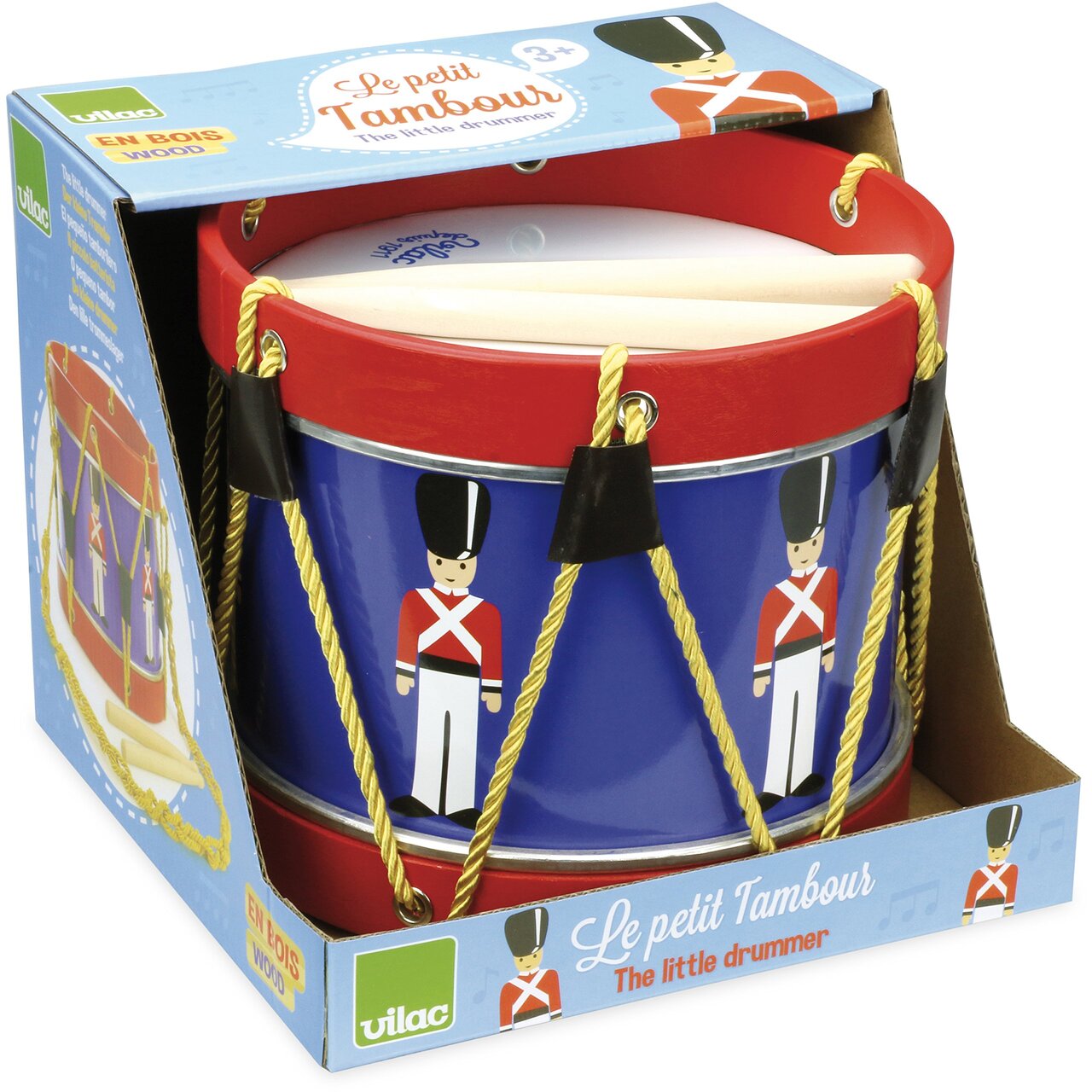 Tambor, da Vilac, com bonitas ilustrações e com baquetas incluídas. Um cordão dourado trançado que irá facilitar o transporte deste tambor. Este tambor irá proporcionar horas de diversão ao seu mini!