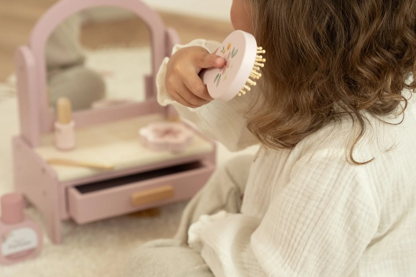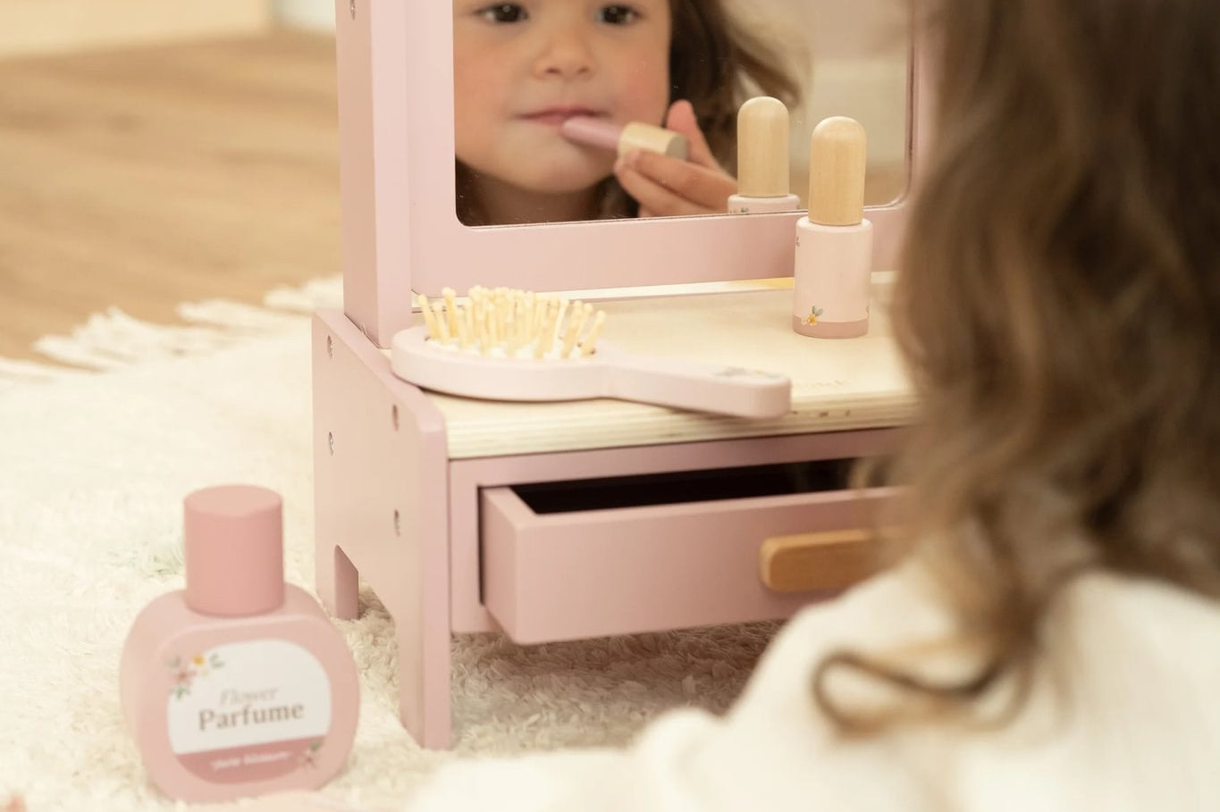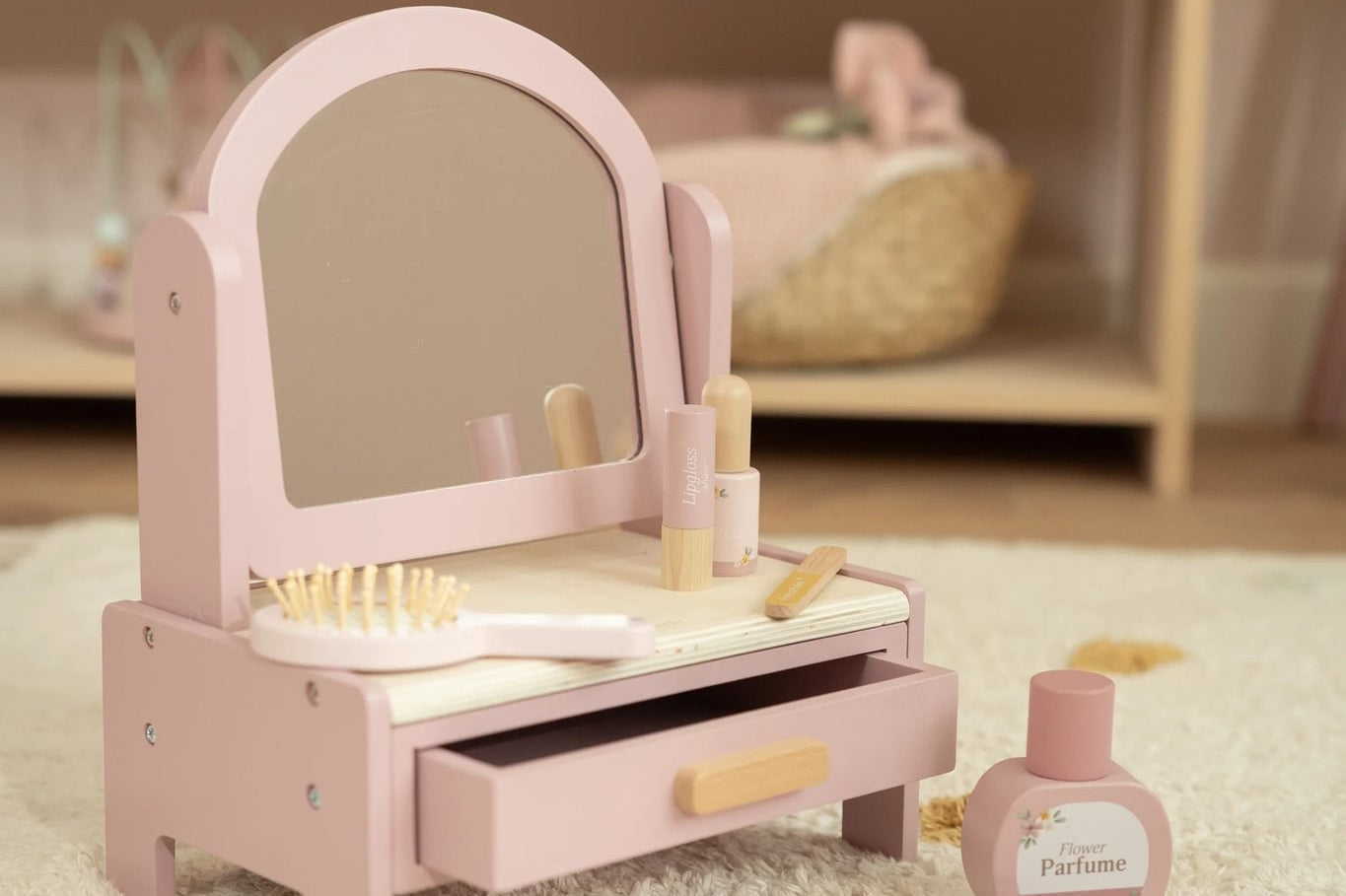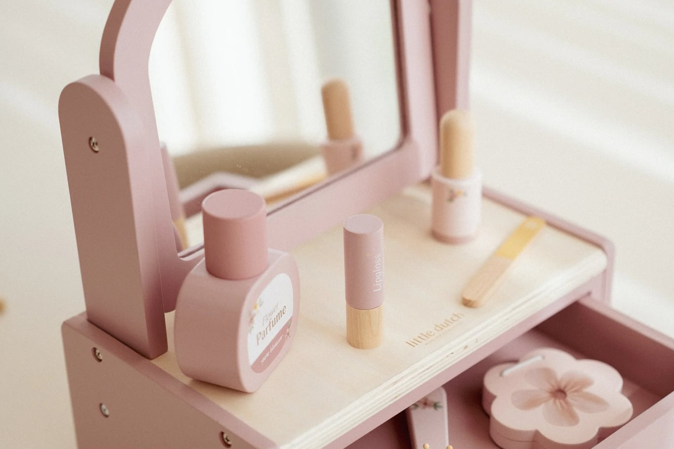 Prepare os seus melhores acessórios e sente-se em frente ao espelho! Este amoroso toucador, da Little Dutch, vai proporcionar horas de brincadeira faz de conta!