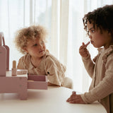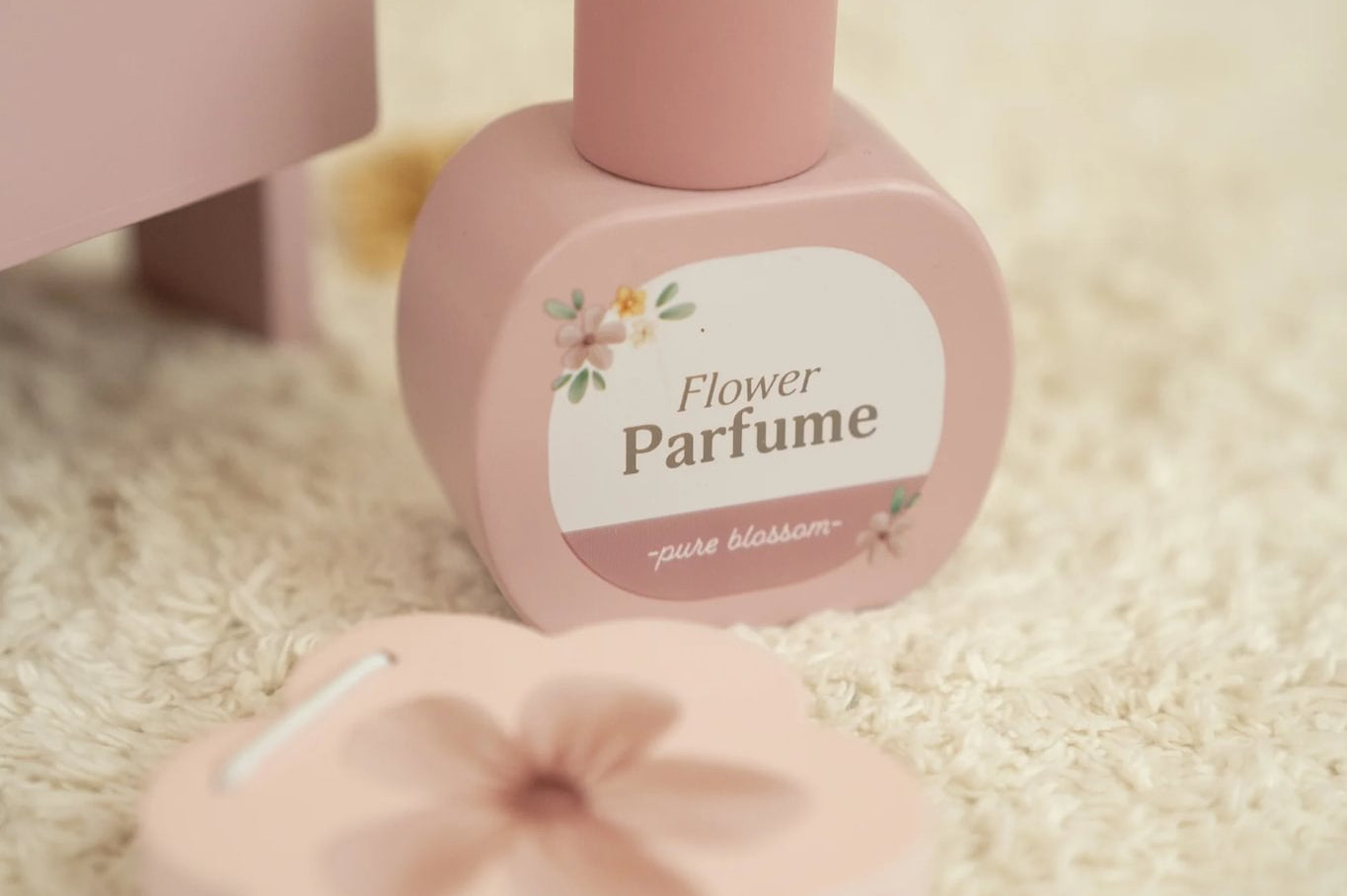 produtos de beleza com estilo, como escova de cabelo, batom e perfume. Perfeita para mini amantes da beleza que gostam de se arranjar e mimar.